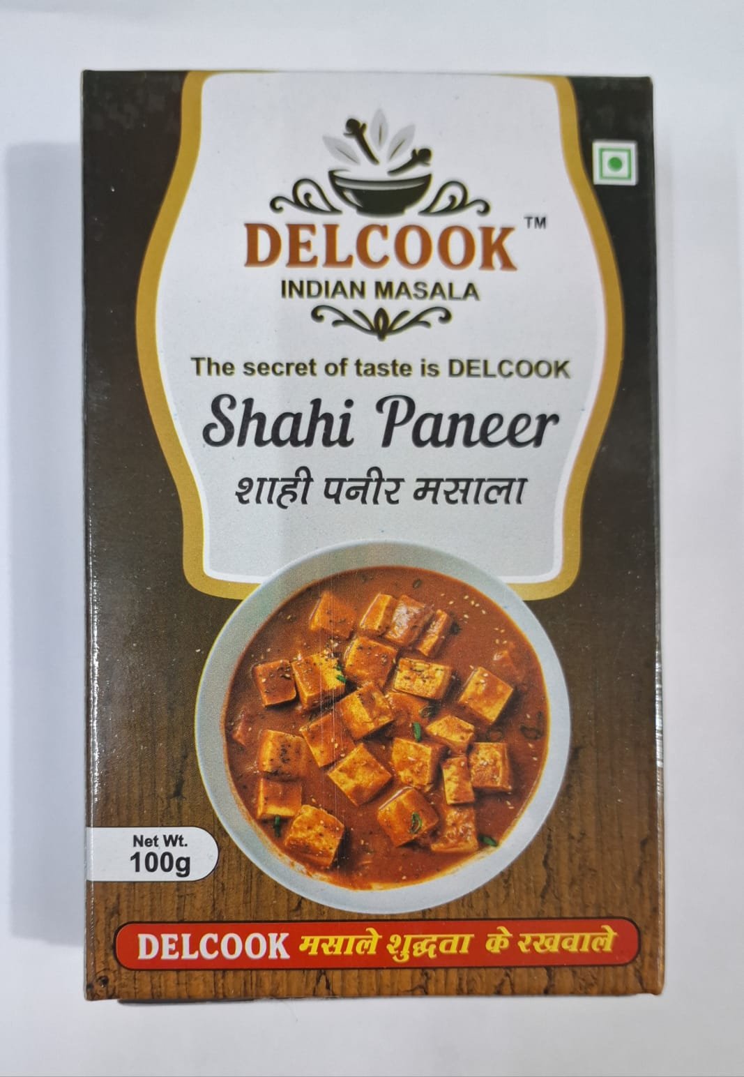 DELCook Shahi Paneer Masala is a premium-quality spice blend specially prepared to bring the authentic, royal taste of traditional Shahi Paneer to your kitchen. Made using carefully selected spices, this masala enhances the richness of paneer dishes with a smooth balance of mild heat, warmth, and aromatic flavors.